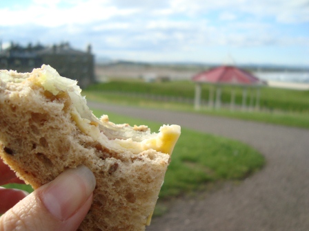 Aged cheddar, onion chutney, malted brown bread. St. Andrews, Scotland.